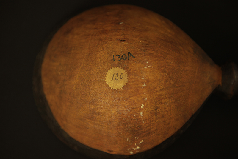Transcription of entry in Accession Register (Ethnology Book 1) under no.130 [Source - Chiara Singh for FHYA, 2021: All text handwritten by F. W. Fitzsimons unless otherwise specified. Direct quotes are indicated in quote marks, with additions indicated in square brackets: "Two native wood ladles"; LOCALITY: "do" [Meaning "ditto" same as entry 125: "Natal"]; SOURCE AND DATE: "Presented". Other inscriptions: "19" [Meaning unknown]; "7/e/1" [Geographic area/community as per the category indicated on the Catalogue Card, which corresponds with "Natal / General"]; Red tick [Relates to an audit conducted on the collection between 1958 and 1961].]