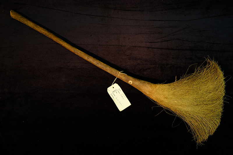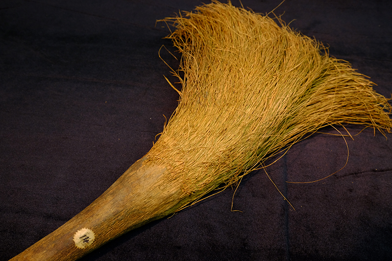 Transcription of entry in Accession Register (Ethnology Book 1) under no.14 [Source - Chiara Singh for FHYA, 2021: All text handwritten by F. W. Fitzsimons unless otherwise specified. Direct quotes are indicated in quote marks, with additions indicated in square brackets: "Native broom made from the stem of the Phoenix reclinatum [Phoenix reclinata]. From a [African] hut"; REMARKS: "WRITTEN OFF: JUNE 1964"; LOCALITY: "Isipingo, Natal"; SOURCE AND DATE: "Purchased 1904". Other inscriptions: "C" [Meaning unknown].]