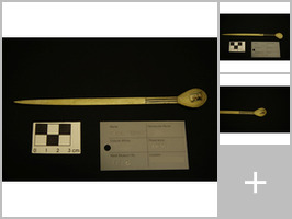 The information provided for the purposes of this index is mostly historical, and not necessarily accurate, or the most recent or complete information the KwaZulu-Natal Museum’s Department of Human Sciences and its staff might have about an object. It derives from elements of the Museum’s collections management system (Accession Register, Catalogue Card and PastPerfect Database), which serves primarily to keep track of objects for inventory/retrieval purposes. Research on these materials is ongoing and KZNM is providing the archival information to the FHYA project because it can assist with provenance studies and other kinds of research.