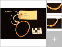 These objects were acquired in the earliest phase of the collection, and were accessioned by Frederick W. Fitzsimons, who worked as curator for the Natal Society and its successor the Natal Government Museum from 1896 to 1906. The Register itself was probably only started once the newly built museum building was occupied in 1903. (It opened to the public as the Natal Government Museum in 1904, and was renamed Natal Museum in 1910.) The early part of the Register has mixed dates (ranging between 1881 and 1904), with the chronological order flattening out at entry 357 (dated to 1905). Fitzsimons probably spent the first couple of years accessioning in no particular order materials that had been acquired by the Natal Society after 1850, probably mostly or entirely after around 1880, when acquisitions began to accelerate. Some among the 100 objects have dates written in the 'Date' column of the Register (between 1885 and 1904), which refer to the date of acquisition into the collection ('Custody') rather than date of manufacture. Where there is no date, custody can be located in the window ca.1880–1904.