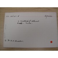 [Source - Nessa Leibhammer for FHYA, 2012, using MAA materials: There were separate Ethnographical and Archaeological accession registers which ran concurrently from 1884 - 1917, with the ethnographic accessions numbered using the following format: ‘E’ and then ‘year accessioned’ followed by sequential numbering, e.g. E 1912.123. A single register was used from 1917 with no letter prefix, using the format of 'year accessioned' followed by sequential numbering. The Museum’s second curator Louis Clarke instigated a Z Register in January 1923, accessioning and entering objects that had not been recorded in the year of acquisition or that needed to be renumbered. These items were given Z numbers, using a ‘Z’ prefix and then sequential numbers, e.g. Z 1234. This numbering system for un-accessioned items found in the museum continued along side the normal accessioning procedure, using the relevant year of entry, until the late 1990s.]