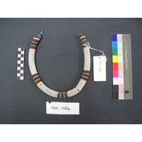 [Source - Chloe Rushovich for FHYA, 2018: File contains object identified by Nessa Leibhammer for FHYA using MAA materials as "necklace", an accession register page, a catalogue card, and an annual report page.]