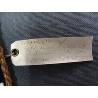 [Source - Chloe Rushovich for FHYA, 2018: File contains object identified by Nessa Leibhammer for FHYA using MAA materials as "belt", accession register pages, a label, a catalogue card, and an annual report page.]