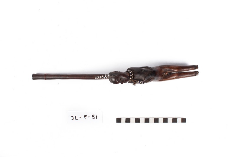 Additional information [Source - Sarah Schaefer for FHYA, 2020, transcription of the Brenthurst catalogue, 'Art and Ambiguity: Perspectives on the Brenthurst Collection of Southern African Art', produced by the Johannesburg Art Gallery, 1991: Smoking-pipe; wood, pokerwork, sinew, glass (seed-beads), metal; bowl: 20,2 x 3,2 x 8,3; length: 34,8; South Sotho/South Nguni; JL-F-51]