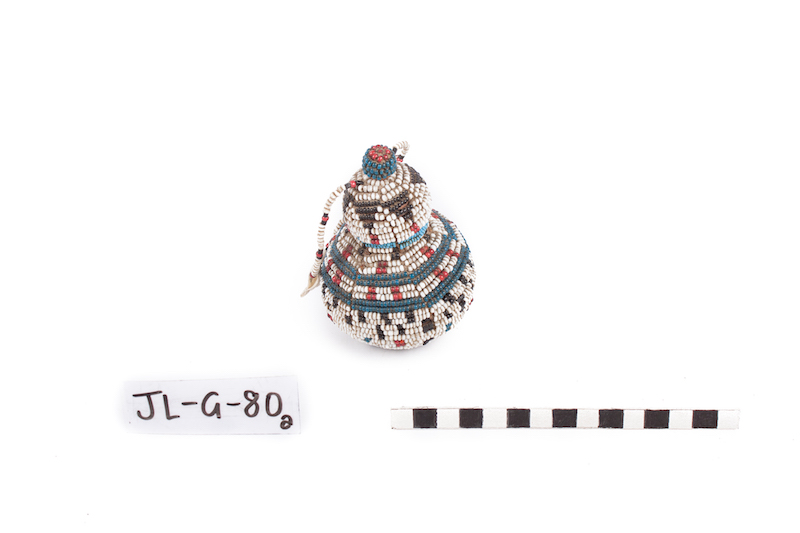 Additional information [Source - Sarah Schaefer for FHYA, 2020, transcription of the Brenthurst catalogue, 'Art and Ambiguity: Perspectives on the Brenthurst Collection of Southern African Art', produced by the Johannesburg Art Gallery, 1991: Snuff-box; gourd, thread, glass (seed-beads); 10,5 x 7 x 7; North Nguni/South Sotho/South Nguni; JL-G-80] Physical characteristics [Source - Brenthurst Catalogue Art and Ambiguity: Perspectives on the Brenthurst Collection of Southern African Art produced by the Johannesburg Art Gallery, 1991. Subsequent to this the collection has been entered onto the CoJ Star database using the Brenthurst Catalogue as the reference: Dimensions: 10,5 x 7 x 7 Material: Gourd, thread, glass (seed beads)] Attributions and conjectures [Source - Nessa Leibhammer for FHYA, 2017: Jonathan Lowen is an ex South African living in London. He sourced items from a wide range of places including antique dealers, markets such as Portabello Road, auction sales, etc. The collection was purchased by wealthy Johannesburg businessman and philanthropist, Harry Oppenheimer, and placed on on-term loan with the Johannesburg Art Gallery (JAG) in 1987. (Info from Karel Nel to Nessa Leibhammer, 12 October 2014) See: also Sandra Klopper, ‘South Africa’s Culture of Collecting: The Unofficial History’, African Arts, Winter 2004, 18-24.] Attributions and conjectures [Source - Nessa Leibhammer for FHYA, 2017: Comments on classification: In his ‘A Preliminary Survey of the Bantu Tribes of South Africa’, Union of South Africa, Department of Native Affairs, Ethnological Publications, Vol. 5, Pretoria, Government Printer, (1935): 7, 70-83, national government ethnologist, Nicholas Van Warmelo did not use the term “North Nguni”. He grouped people living both north and south of the Thukela, under one umbrella term, “Natal Nguni”, based on linguistic affinity. His classification was adapted by the ethnology curator, Margaret Shaw, in her 1958 “System of Cataloguing Ethnographic Material in Museums” which determined that items from the region were to be classified as “Natal Nguni: Zulu and others (not differentiated).” According to art historian, Anitra Nettleton, the classificatory system used by art galleries and museum shifted from Shaw’s model to the one where “Natal Nguni” fell away and was replaced by “North/Northern Nguni” for KwaZulu-Natal and Swaziland because scholars found it difficult to distinguish items from adjacent areas, or emmigrant people from those from the KZN region. Scholars working with the JAG materials used broad ethno-linguistic categories (Zulu, Xhosa, Tsonga, Shona, Sotho, Tswana) to identify the makers/users of the objects, all of which came to JAG without much by way of provenance, and identification was based on factors such as object type, materials, formal composition, style and surface patterning (emails A. Nettleton to N. Leibhammer, 25 and 28 November 2014). Jonathan Lowen employed Margaret Carey, a British ethnologist, to catalogue his collection collection in the winter of 1983-84. She classified many of the objects as 'Zulu' (sic) simply because of a lack of information about the objects. (Rhoda Rosen citing Sandra Klopper.) For an extended version of this note on JAG classification see: 'JAG Classification Note' in Additional Resources]