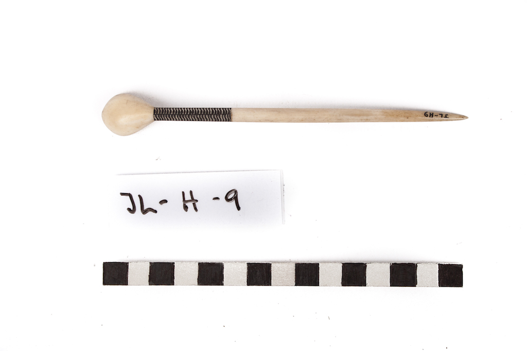 Additional information [Source - Sarah Schaefer for FHYA, 2020, transcription of the Brenthurst catalogue, 'Art and Ambiguity: Perspectives on the Brenthurst Collection of Southern African Art', produced by the Johannesburg Art Gallery, 1991: Snuff-spoon; bone, pigment; 15,6 x 1,8 x 0,6; North Nguni/South Nguni; JL-H-9]