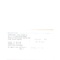 [Source - Chloe Rushovich for FHYA, 2018: File contains an object identified by Nessa Leibhammer using JAG materials as a 'snuff-spoon' and its associated catalogue card. The object was acquired by Harry Oppenheimer for the Brenthurst Library from Jonathan Lowen. The Brenthurst Collection is on long term loan to the Johannesburg Art Gallery. Related items include the box files 'JAG Archives: Traditional Collection: Brenthurst Collection: From Lowen Collection: 11/1A VOL 1 10/58; '11/1A VOL 2: Art & Ambiguity. Vol 1: Correspondence Reports 10/58', 'JAG Archives: Traditional Collection: Brenthurst References' and 'Traditional Collection: M.Stevenson'.]