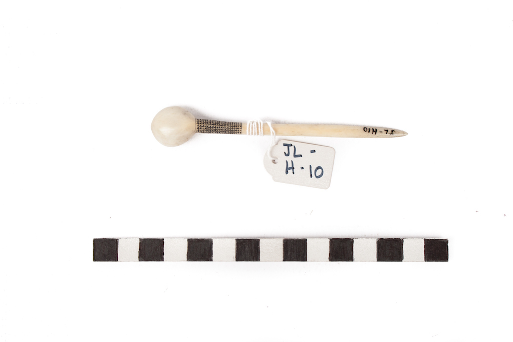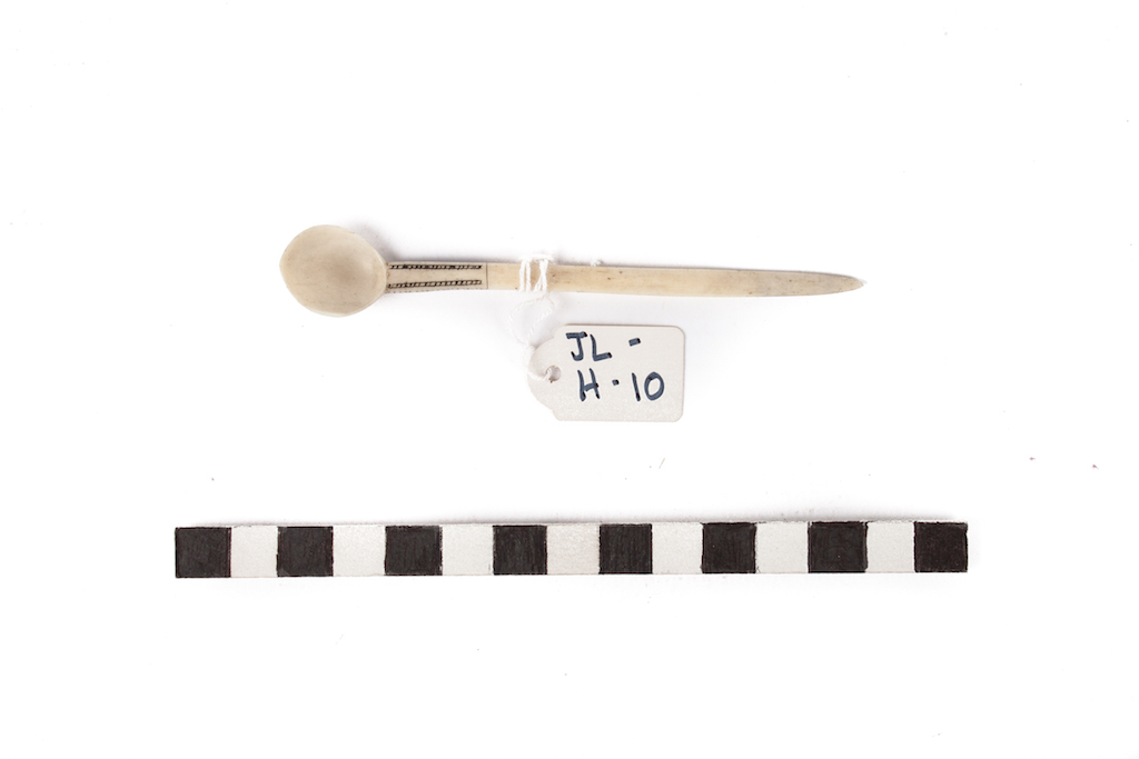 Additional information [Source - Sarah Schaefer for FHYA, 2020, transcription of the Brenthurst catalogue, 'Art and Ambiguity: Perspectives on the Brenthurst Collection of Southern African Art', produced by the Johannesburg Art Gallery, 1991: Snuff-spoon; bone, pigment, 11 x 1,9 x 0,6; North Nguni/South Nguni; JL-H-10]