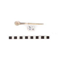 [Source - Chloe Rushovich for FHYA, 2018: File contains an object identified by Nessa Leibhammer using JAG materials as a 'snuff-spoon' and its associated catalogue card. The object was acquired by Harry Oppenheimer for the Brenthurst Library from Jonathan Lowen. The Brenthurst Collection is on long term loan to the Johannesburg Art Gallery. Related items include the box files 'JAG Archives: Traditional Collection: Brenthurst Collection: From Lowen Collection: 11/1A VOL 1 10/58; '11/1A VOL 2: Art & Ambiguity. Vol 1: Correspondence Reports 10/58', 'JAG Archives: Traditional Collection: Brenthurst References' and 'Traditional Collection: M.Stevenson'.]
