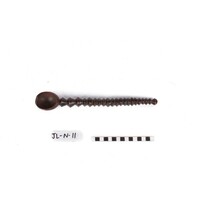 [Source - Chloe Rushovich for FHYA, 2018: File contains object identified by Nessa Leibhammer using JAG materials as a 'spoon' and its associated catalogue card. The object was acquired by Harry Oppenheimer for the Brenthurst Library from Jonathan Lowen. The Brenthurst Collection is on long term loan to the Johannesburg Art Gallery. Related items include the box files 'JAG Archives: Traditional Collection: Brenthurst Collection: From Lowen Collection: 11/1A VOL 1 10/58; '11/1A VOL 2: Art & Ambiguity. Vol 1: Correspondence Reports 10/58', 'JAG Archives: Traditional Collection: Brenthurst References' and 'Traditional Collection: M.Stevenson'.]