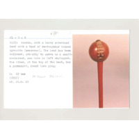 [Source - Chloe Rushovich for FHYA, 2018: File contains object identified by Nessa Leibhammer using JAG materials as a 'club' and its associated catalogue card. The object was acquired by Harry Oppenheimer for the Brenthurst Library from Jonathan Lowen. The Brenthurst Collection is on long term loan to the Johannesburg Art Gallery. Related items include the box files 'JAG Archives: Traditional Collection: Brenthurst Collection: From Lowen Collection: 11/1A VOL 1 10/58; '11/1A VOL 2: Art & Ambiguity. Vol 1: Correspondence Reports 10/58', 'JAG Archives: Traditional Collection: Brenthurst References' and 'Traditional Collection: M.Stevenson'.]