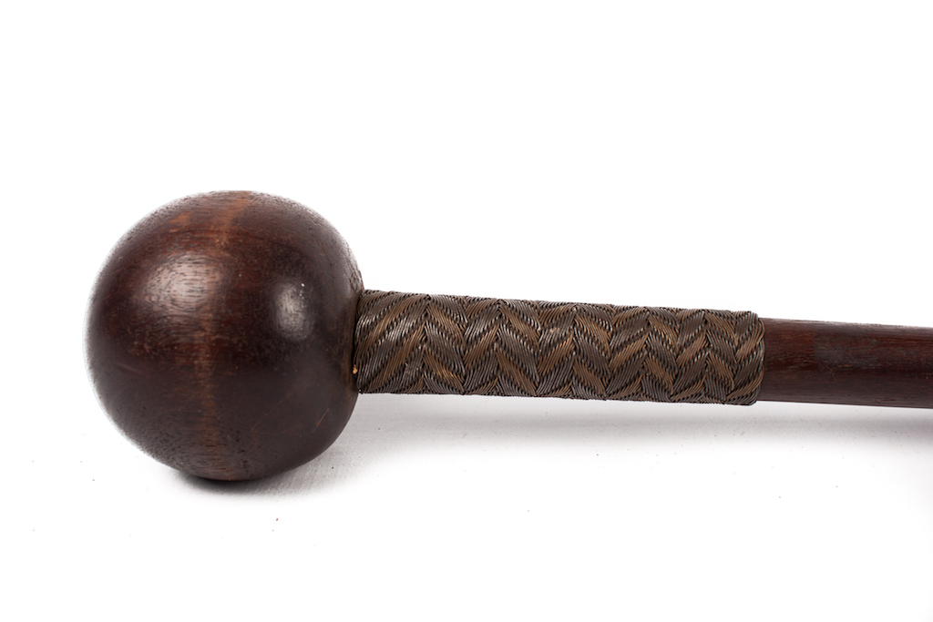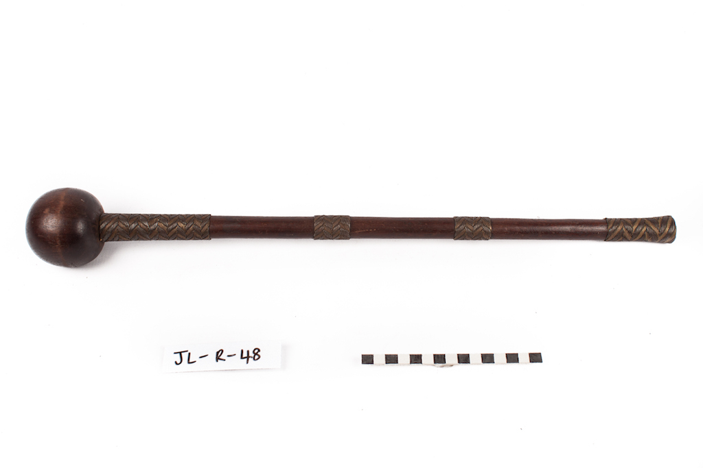 Additional information [Source - Sarah Schaefer for FHYA, 2020, transcription of the Brenthurst catalogue, 'Art and Ambiguity: Perspectives on the Brenthurst Collection of Southern African Art', produced by the Johannesburg Art Gallery, 1991: Club; wood, brass (wire), iron (wire); 59,6 x 7,2 x 7,2; Southern Africa; JL-R-48]