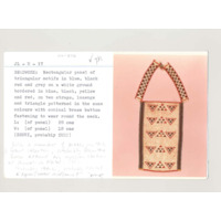 [Source - Chloe Rushovich for FHYA, 2018: File contains object identified by Nessa Leibhammer using JAG materials as a 'beadwork' and its associatedobject tag and catalogue card. The object was acquired by Harry Oppenheimer for the Brenthurst Library from Jonathan Lowen. The Brenthurst Collection is on long term loan to the Johannesburg Art Gallery. Related items include the box files 'JAG Archives: Traditional Collection: Brenthurst Collection: From Lowen Collection: 11/1A VOL 1 10/58; '11/1A VOL 2: Art & Ambiguity. Vol 1: Correspondence Reports 10/58', 'JAG Archives: Traditional Collection: Brenthurst References' and 'Traditional Collection: M.Stevenson'.]