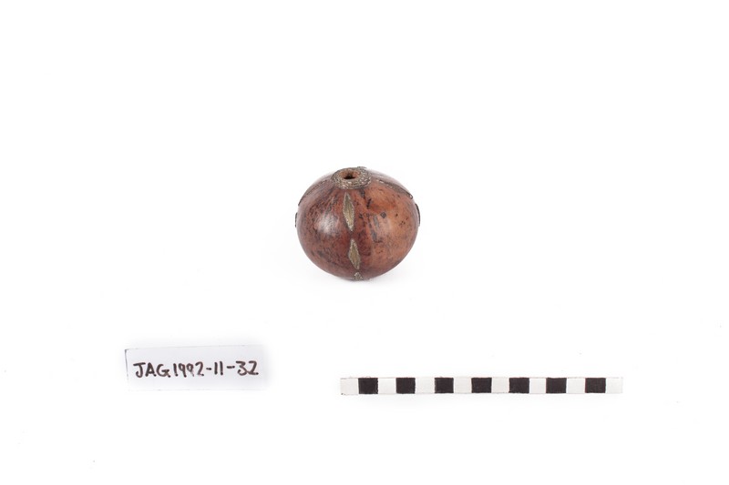 Description [Source - JAG accession registers and Horstmann catalogue published by JAG, 2015: JAG Description: Snuff-box, Northern Nguni; Dimensions: 6,1 x 7,8 x 7,8 cm. Material: gourd, brass (wire), copper (wire)]