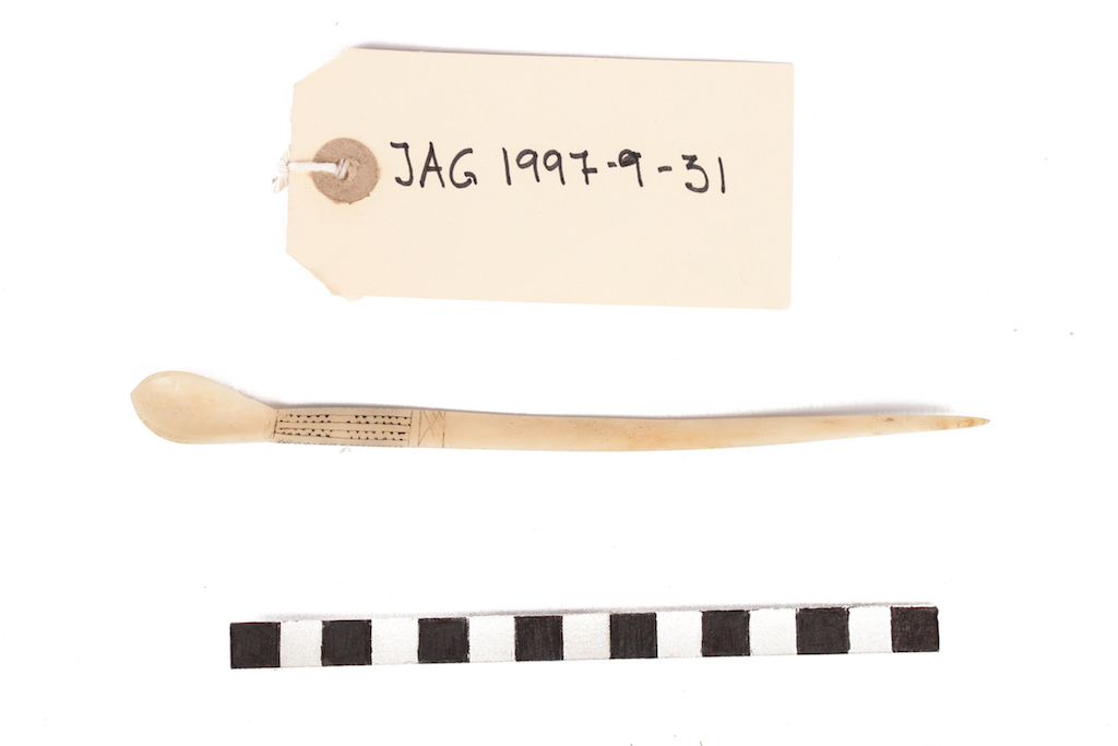 Description [Source - Nessa Leibhammer for FHYA, 2017, using JAG materials: Spoon, Zulu; Material: Bone, pigment]