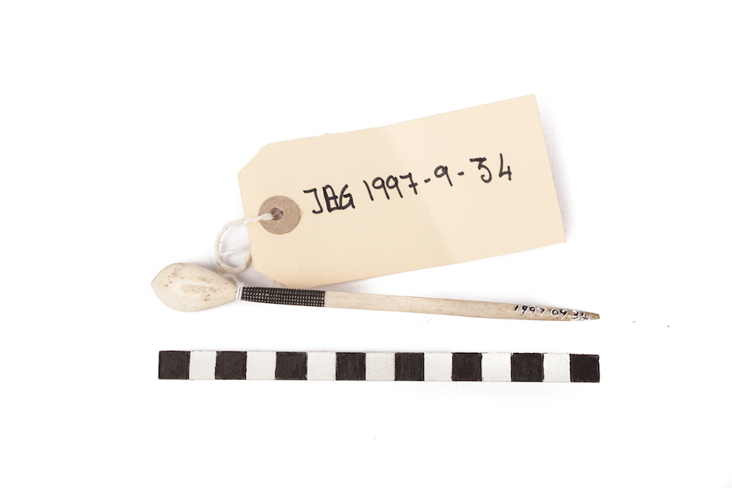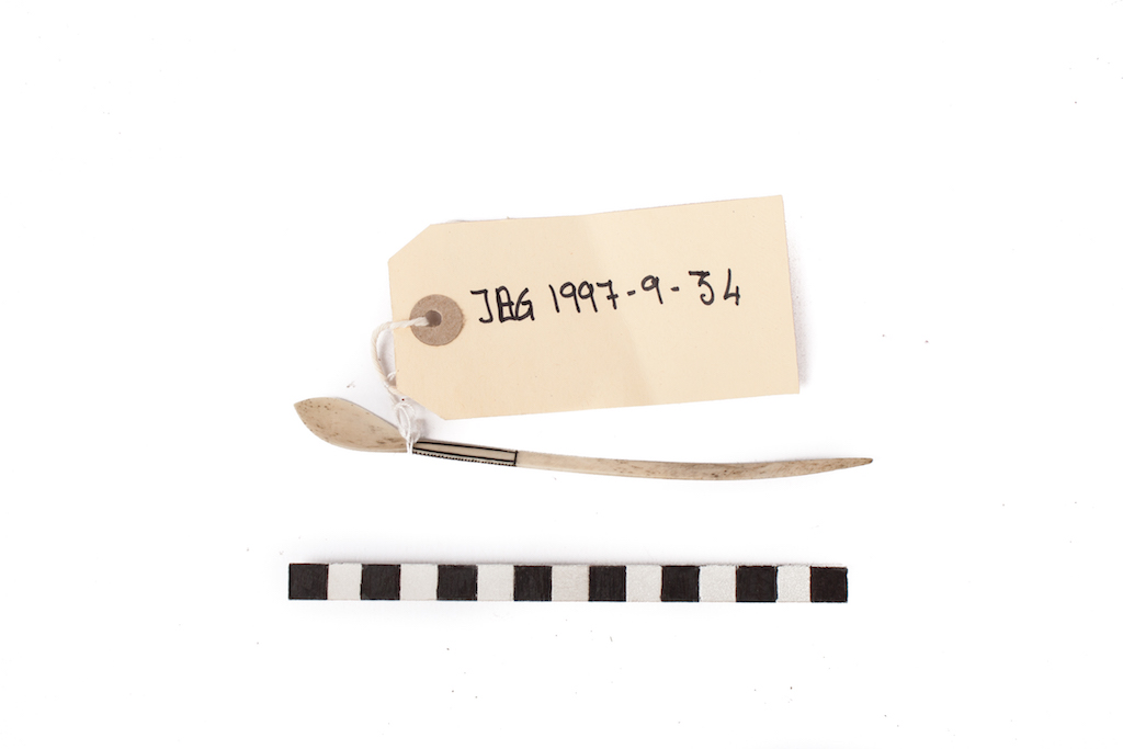 Description [Source - Nessa Leibhammer for FHYA, 2017, using JAG materials: Spoon, Zulu; Material: Bone, pigment]
