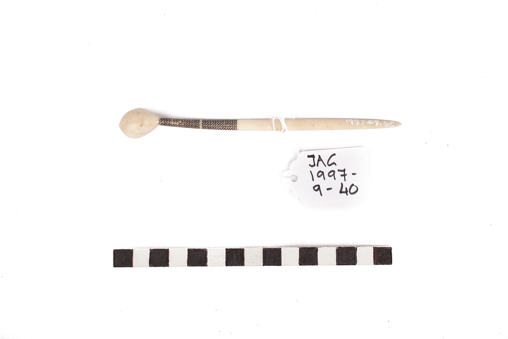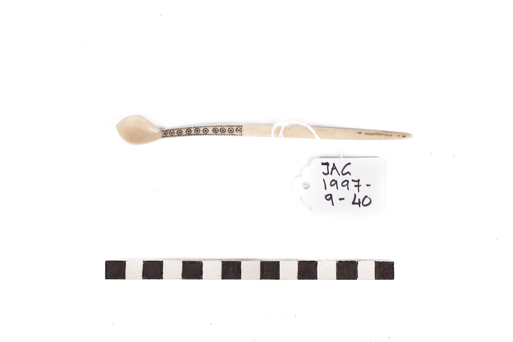 Description [Source - Nessa Leibhammer for FHYA, 2017, using JAG materials: Spoon, Zulu; Material: Bone, pigment]