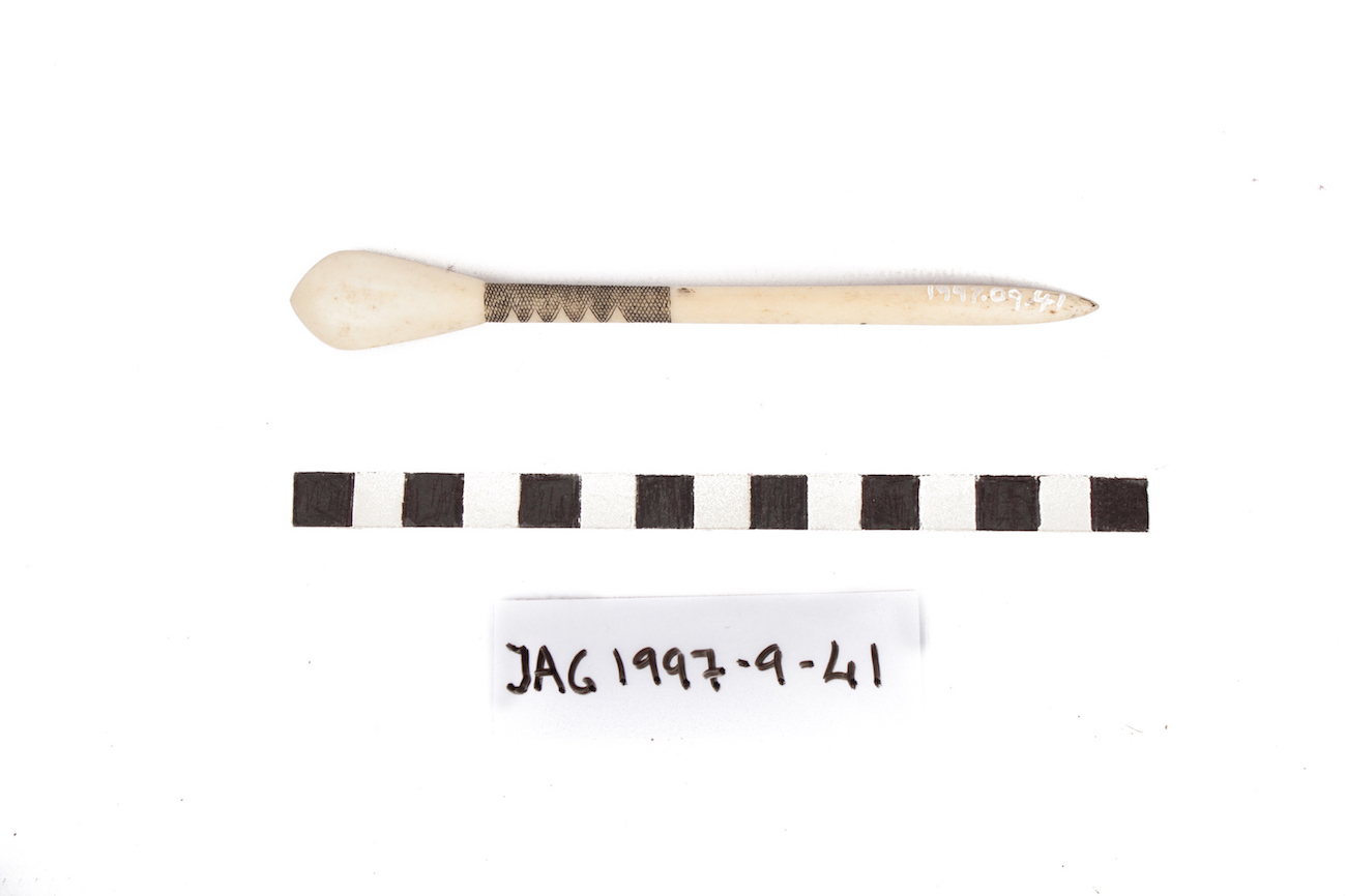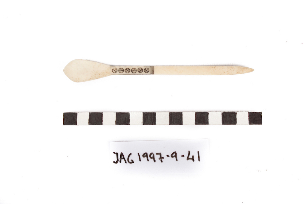 Description [Source - Nessa Leibhammer for FHYA, 2017, using JAG materials: Spoon, Zulu; Material: Bone, pigment]