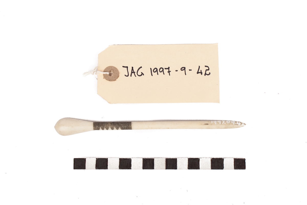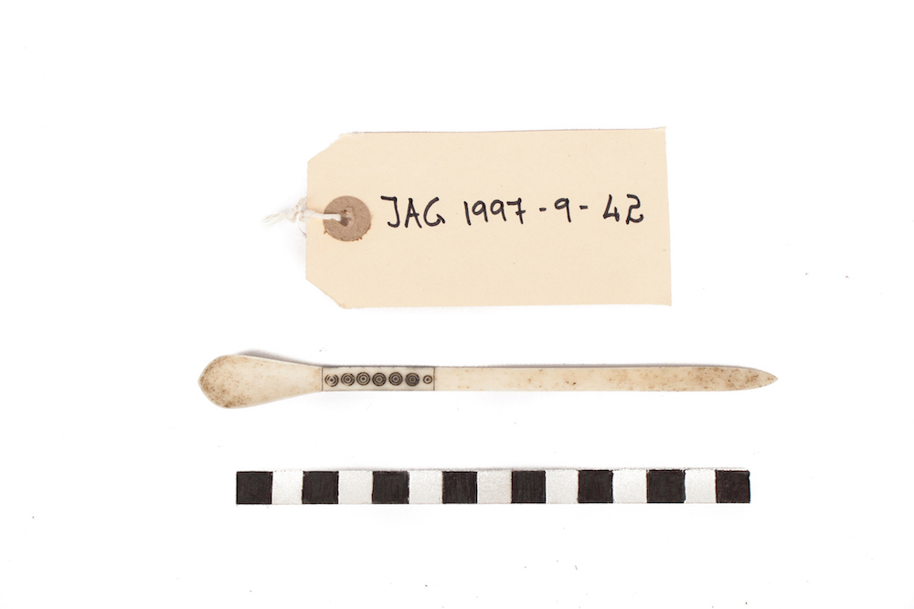 Description [Source - Nessa Leibhammer for FHYA, 2017, using JAG materials: Spoon, Zulu; Material: Bone, pigment]