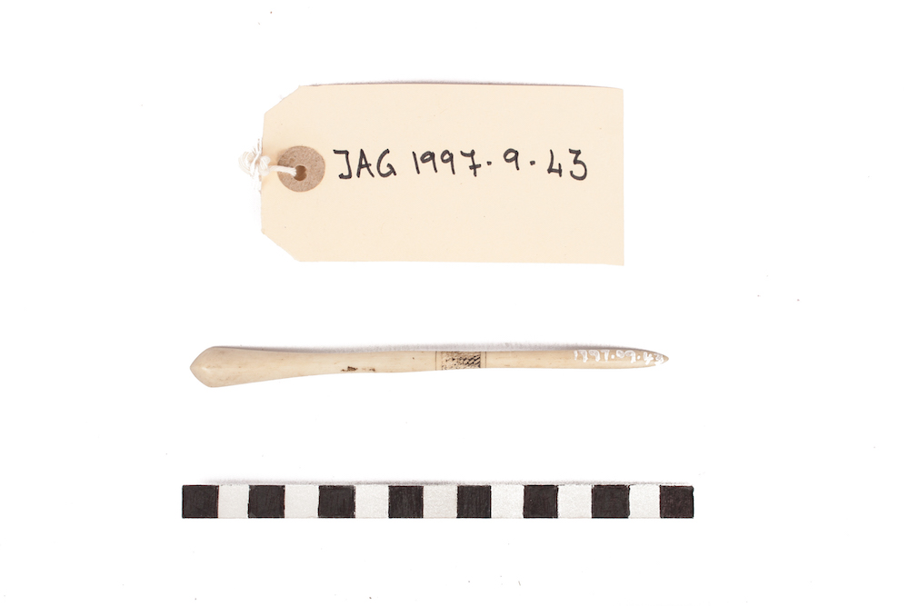 Description [Source - Nessa Leibhammer for FHYA, 2017, using JAG materials: Spoon, Zulu; Material: Bone, pigment]