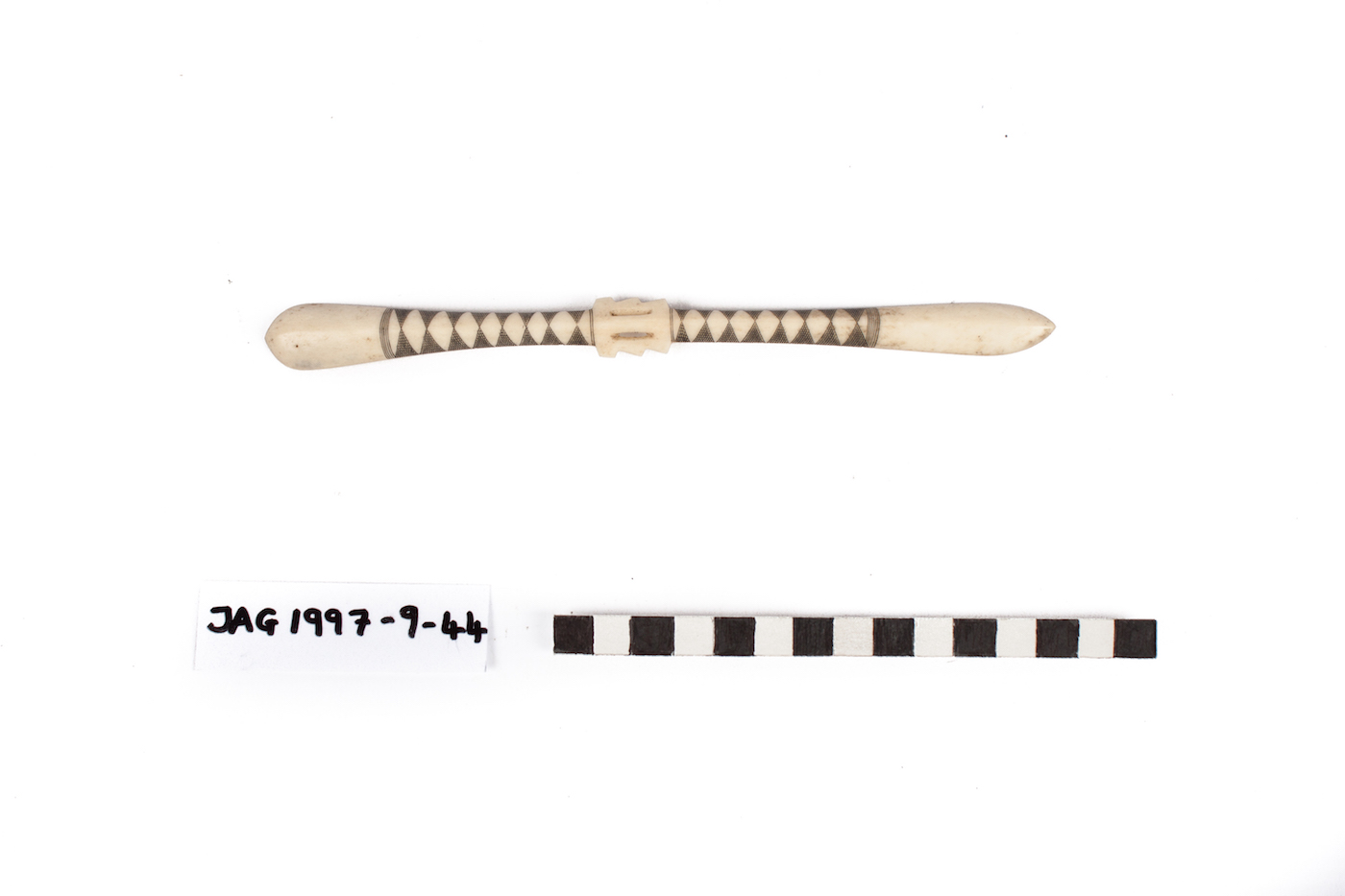 Description [Source - Nessa Leibhammer for FHYA, 2017, using JAG materials: Spoon, Zulu; Material: Bone, pigment]