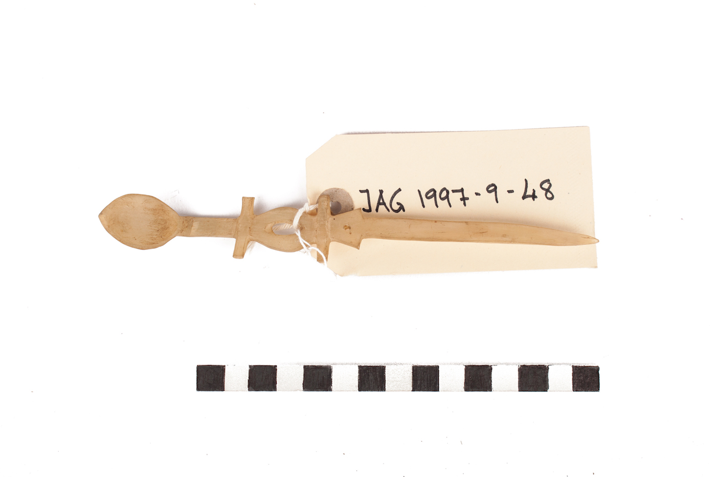Description [Source - Nessa Leibhammer for FHYA, 2017, using JAG materials: Spoon, Zulu; Material: Bone, pigment]