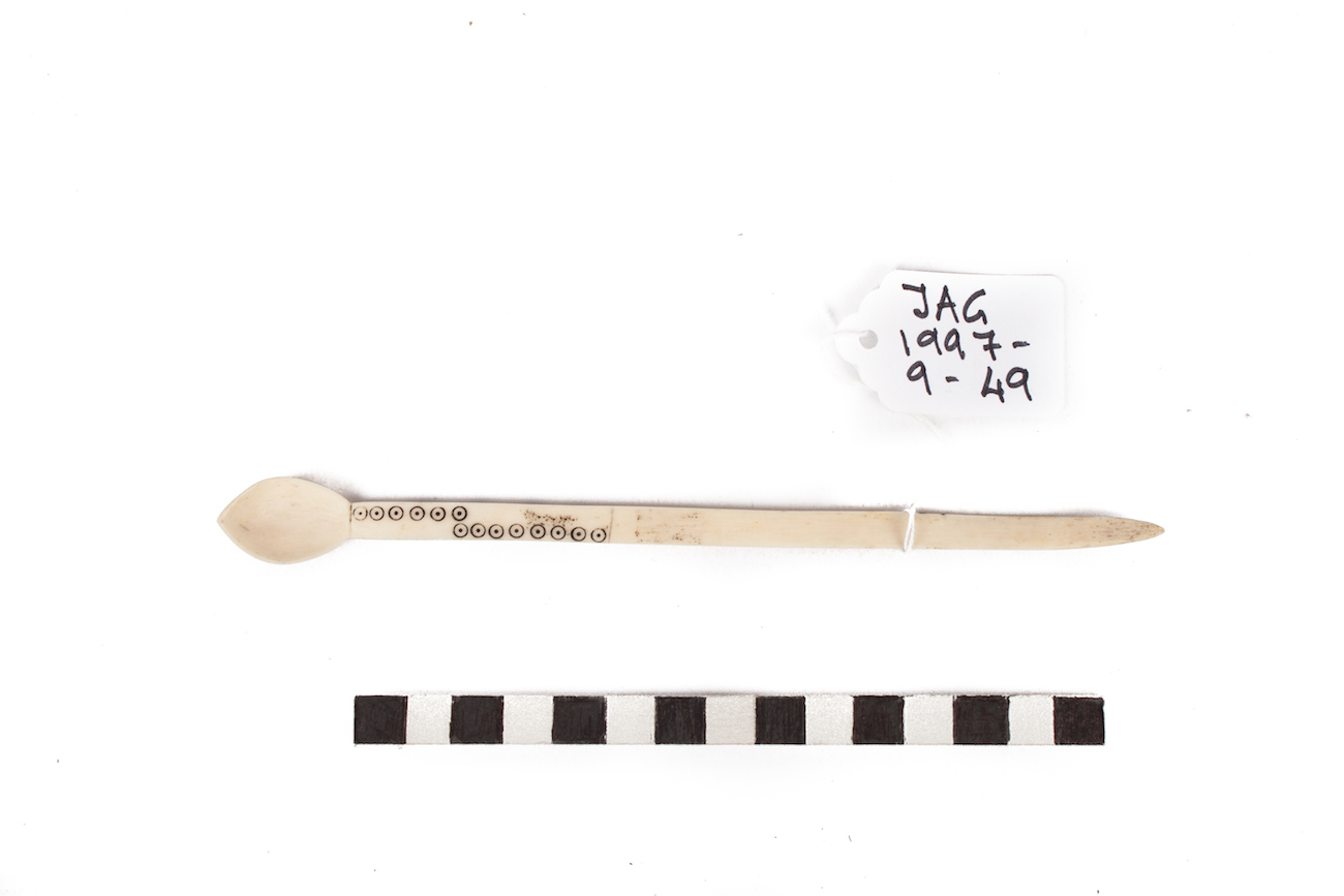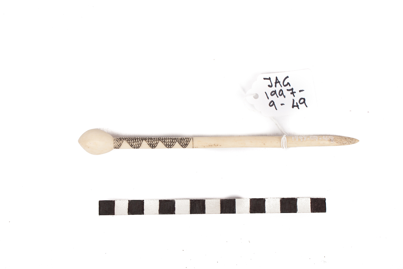 Description [Source - Nessa Leibhammer for FHYA, 2017, using JAG materials: Spoon, Zulu; Material: Bone, pigment]