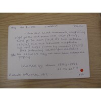 [Source - Nessa Leibhammer for FHYA, 2012, using MAA materials: There were separate Ethnographical and Archaeological accession registers which ran concurrently from 1884 - 1917, with the ethnographic accessions numbered using the following format: 'E' and then 'year accessioned' followed by sequential numbering, e.g. E 1912.123. A single register was used from 1917 with no letter prefix, using the format of 'year accessioned' followed by sequential numbering. The Museum's second curator Louis Clarke instigated a Z Register in January 1923, accessioning and entering objects that had not been recorded in the year of acquisition or that needed to be renumbered. These items were given Z numbers, using a 'Z' prefix and then sequential numbers, e.g. Z 1234. This numbering system for un-accessioned items found in the museum continued along side the normal accessioning procedure, using the relevant year of entry, until the late 1990s.]