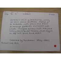 [Source - Chloe Rushovich for FHYA, 2018: File contains objects identified by Nessa Leibhammer for FHYA using MAA materials as "skirt", a label, accession register pages, catalogue cards, and annual report pages.]