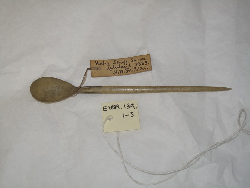 Attributions and conjectures [Source - Nessa Leibhammer for FHYA, 2012, using MAA materials: Names: Comb - MAA (01/12/1998) Classified: Keyword: Personal Adornment; Toilet and Hygiene Material: Bone Descriptions: Comb, bone - MAA (01/12/1998) Local: Maker: Cultural Group: Author: Date Made: Dimensions: 22.4 cm long, 2 cm wide, 0.3 cm high Source: Feilden, H.W. (donor) Source Date: 1882 Place: Africa; Southern Africa; South Africa; Natal - MAA (01/12/1998) Period: Contexts: (bio) Colonel Henry W. Feilden MAA (01/12/1998) Updated: 26/07/2013 Created: 01/12/1998]