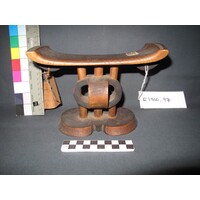 [Source - Chloe Rushovich for FHYA, 2018: File contains an object identified by Nessa Leibhammer for FHYA using MAA materials as "headrest", labels, an accession register page, a catalogue card, and an annual report page.]