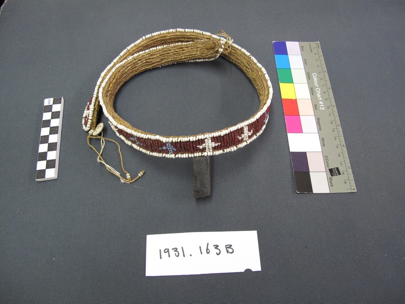 Attributions and conjectures [Source - Nessa Leibhammer for FHYA, 2012, using MAA materials: Name: Belt - MAA (01/12/1998) Classified: Keyword: Personal Adornment; Clothing Material: Bead; Grass Descriptions: Two beaded waistbelts for women. A: rows of white and pink bands with a (?) diamond shaped design in blue. B: Dark red beads with white and blue and white bead crosses. Collected between 1890-1900. Sa... - MAA (01/12/1998) Local: Maker: Cultural Group: ?Zulu Author: Date Made: Dimensions: Source: Murray, E.G.D Source Date: Place: Africa; Southern Africa; South Africa - MAA (01/12/1998) Period: Contexts: Source: Updated: 03/12/2004 Created: 01/12/1998]