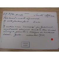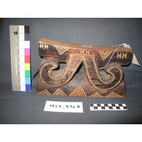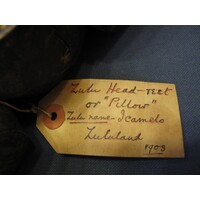 [Source - Chloe Rushovich for FHYA, 2018: File contains object identified by Nessa Leibhammer for FHYA using MAA materials as "headrest", labels, a catalogue card and an annual report page.]
