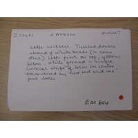 [Source - Chloe Rushovich for FHYA, 2018: File contains object identified by Nessa Leibhammer for FHYA using MAA materials as "necklace", and a catalogue card.]