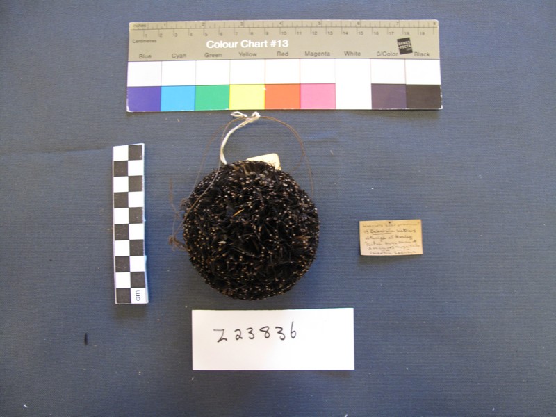 Attributions and conjectures [Source - Nessa Leibhammer for FHYA, 2012, using MAA materials: Names: Ornament - MAA (01/11/1998) Classified: Keyword: Personal Adornment; ?Masques and Drama Material: Feather; Fibre Descriptions: Warrior's head ornament of Sakabula feathers. (But looks like a penis cover) (not penis cover – definitely head ornament). Round ball of short cropped black feathers with opening. Old label - "Obtained at Henley, Natal from man of Amampoomosa tribe, chief of tribe Saduma". (sic Amapumuza, Laduma) 'evidence of insect debris - Rachel Hand 11/12/2001' - MAA (01/11/1998) Local: Maker: Cultural Group: Amampoomosa; Saduma Author: Date Made: Dimensions: Source: Source Date: Place: Africa; Southern Africa; South Africa; Natal; Henley - MAA (01/11/1998) Africa; Southern Africa; South Africa - MAA (01/11/1998) Period: Contexts: MAA (00/00/0000) Updated: 22/07/2008 Created: 01/11/1998]