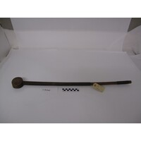 [Source - Chloe Rushovich for FHYA, 2018: File contains an object identified by Nessa Leibhammer for FHYA using MAA materials as "club", and labels.]