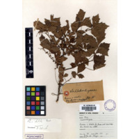 [Source - Chloe Rushovich for FHYA, 2017: File contains organic plant matter identified by Kevin Carnie-Thompson for FHYA using Bews Herbarium material as iNhlokoshiyane/Rhus dentata, photographed together with it's accompanying label, catalogue card, 10cm scale bar and a colour reference grid.]