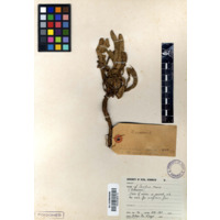 [Source - Chloe Rushovich for FHYA, 2017: File contains organic plant matter identified by Kevin Carnie-Thompson for FHYA using Bews Herbarium material as uMasane/Sonchus nanus, photographed together with it's accompanying label, catalogue card, 10cm scale bar and a colour reference grid.]