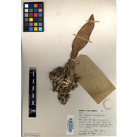 [Source - Chloe Rushovich for FHYA, 2017: File contains organic plant matter identified by Kevin Carnie-Thompson for FHYA using Bews Herbarium material as iPamba/Eulophia streptopetala, photographed together with it's accompanying label, catalogue card, 10cm scale bar and a colour reference grid.]