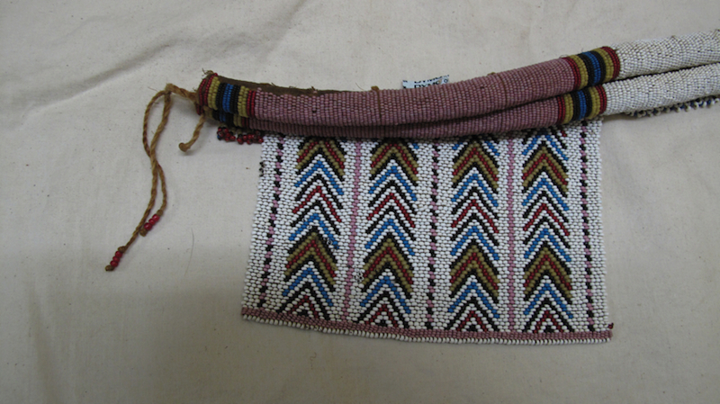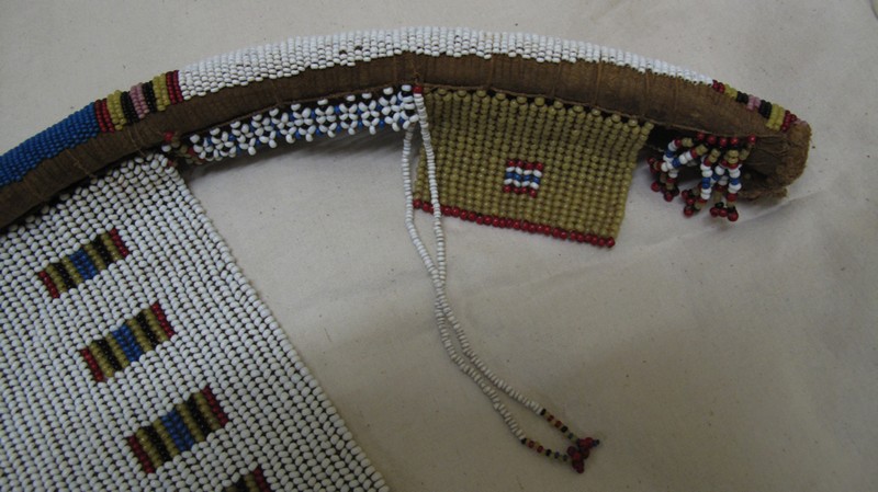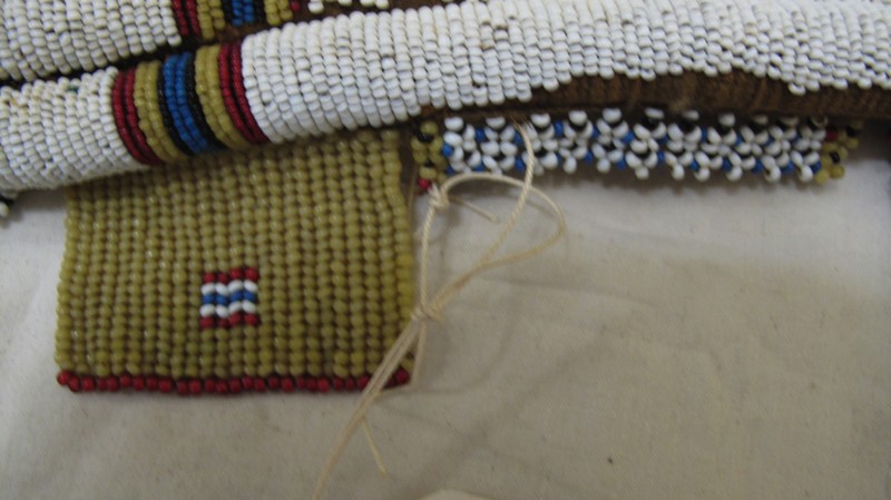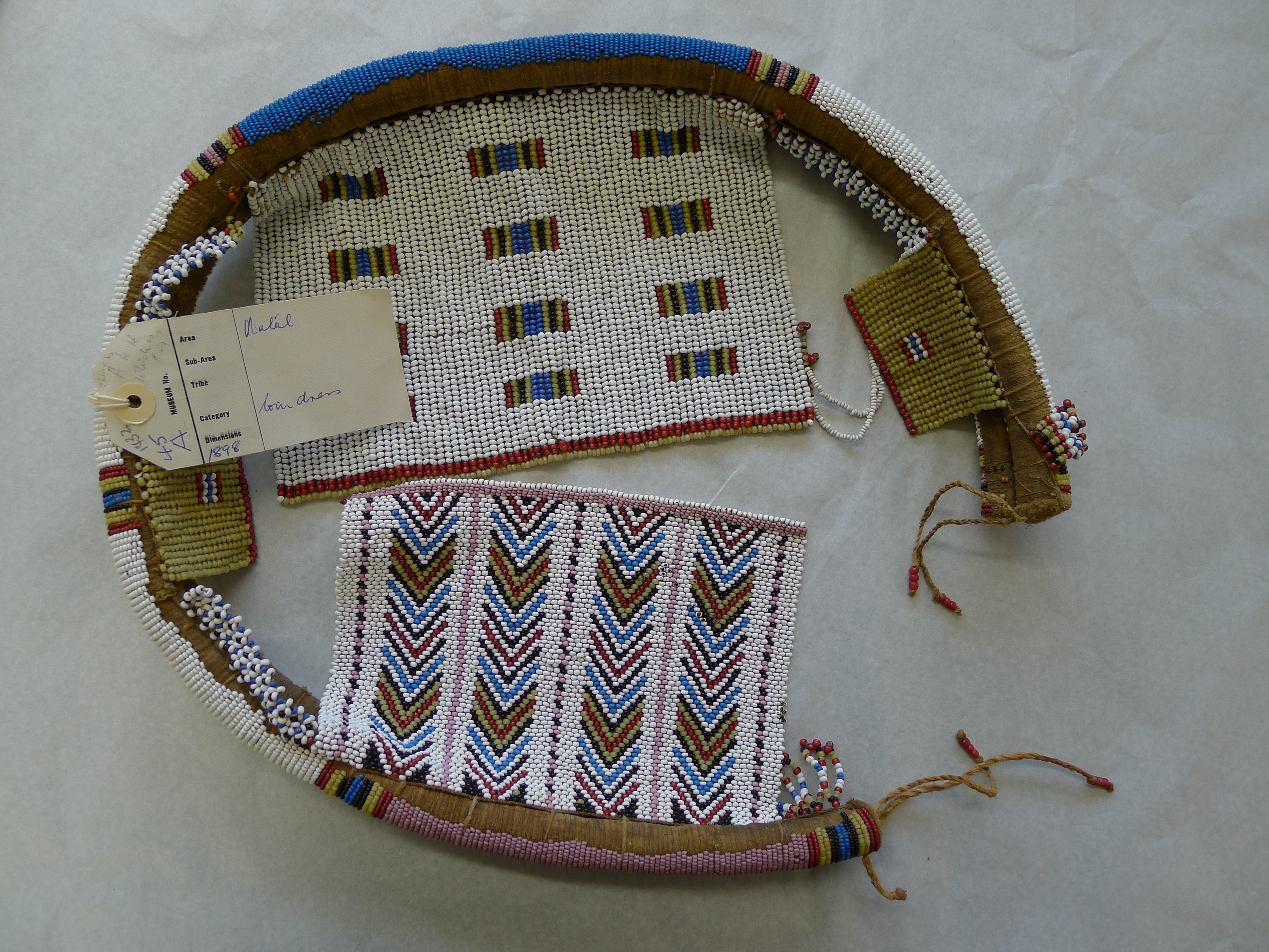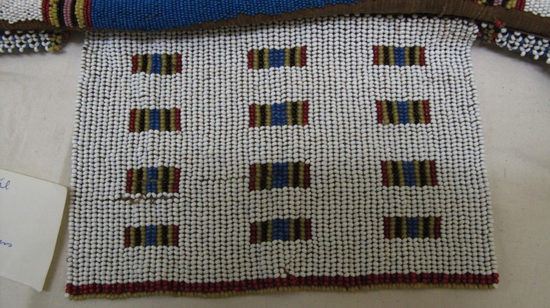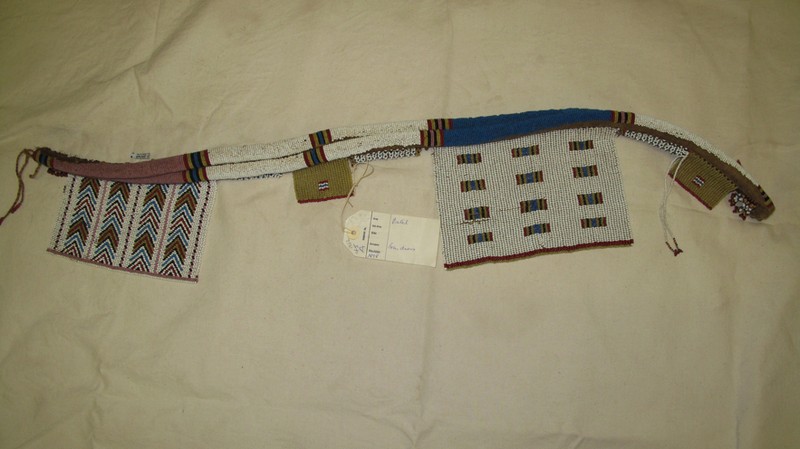 KZNM metadata [Source - Chloe Rushovich for FHYA, 2016, using KwaZulu Natal Museum Catalogue Card: Provenance: Natal Function: worn by unmarried girls Raw materials: cotton core, fibre thread, Beads: blue, white, yellow, black, pink, red Comments: 45A-H complete outfit? Method Obtained: donated 1898]