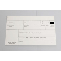 [Source - Chloe Rushovich for FHYA, 2018: File contains object identified by FHYA using KZNM materials as an 'ornament', a catalogue card, and relevant accession record material.]