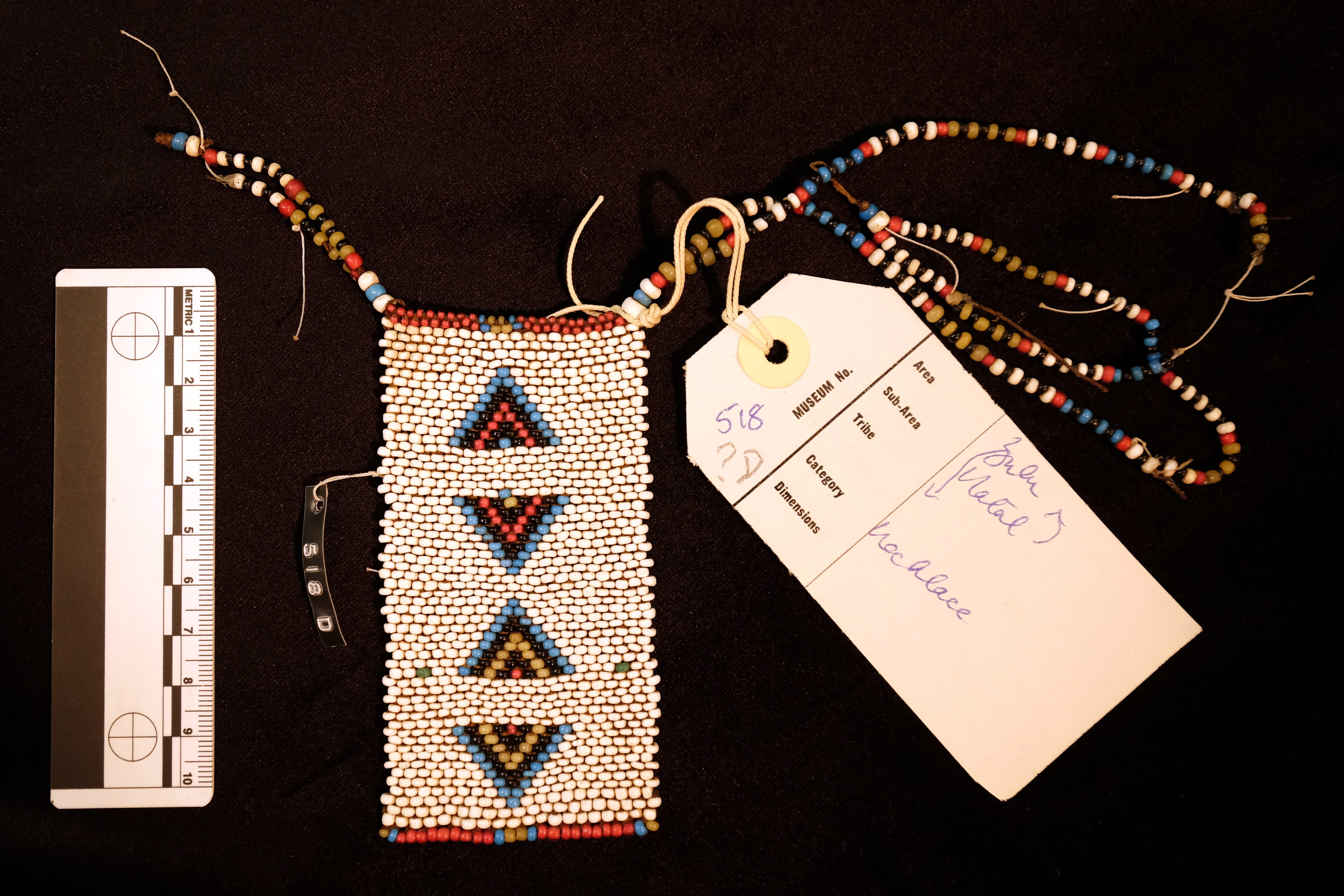 Additional information [Source - Chloe Rushovich for FHYA, 2020, transcription of KwaZulu-Natal Museum object detail catalogue material: Collection: Anthropology Accession #: 00518 Othername: ulimi Received as: Exchange Received date: 1906 Catalogued by: Frederick W. Fitzsimons Source: Franz Mayr, possibly Description: Accessions Register (Ethnology Book 1): "Beadwork ornaments. Zulu name Ulimi. Suspended from the neck and worn over the chest." One of a set of four originally; 518B is missing. People: Mayr, Franz Publication: Ann. Natal Museum Vol 1, pp. 159-165: 'Language of colours amongst the Zulus expressed by their bead-work ornaments; and some general notes on their personal adornments and clothing'. By Franz Mayr. Fig. 3 = 518C. Material: Beads Provenance: Accessions register: Locality: "Natal".]