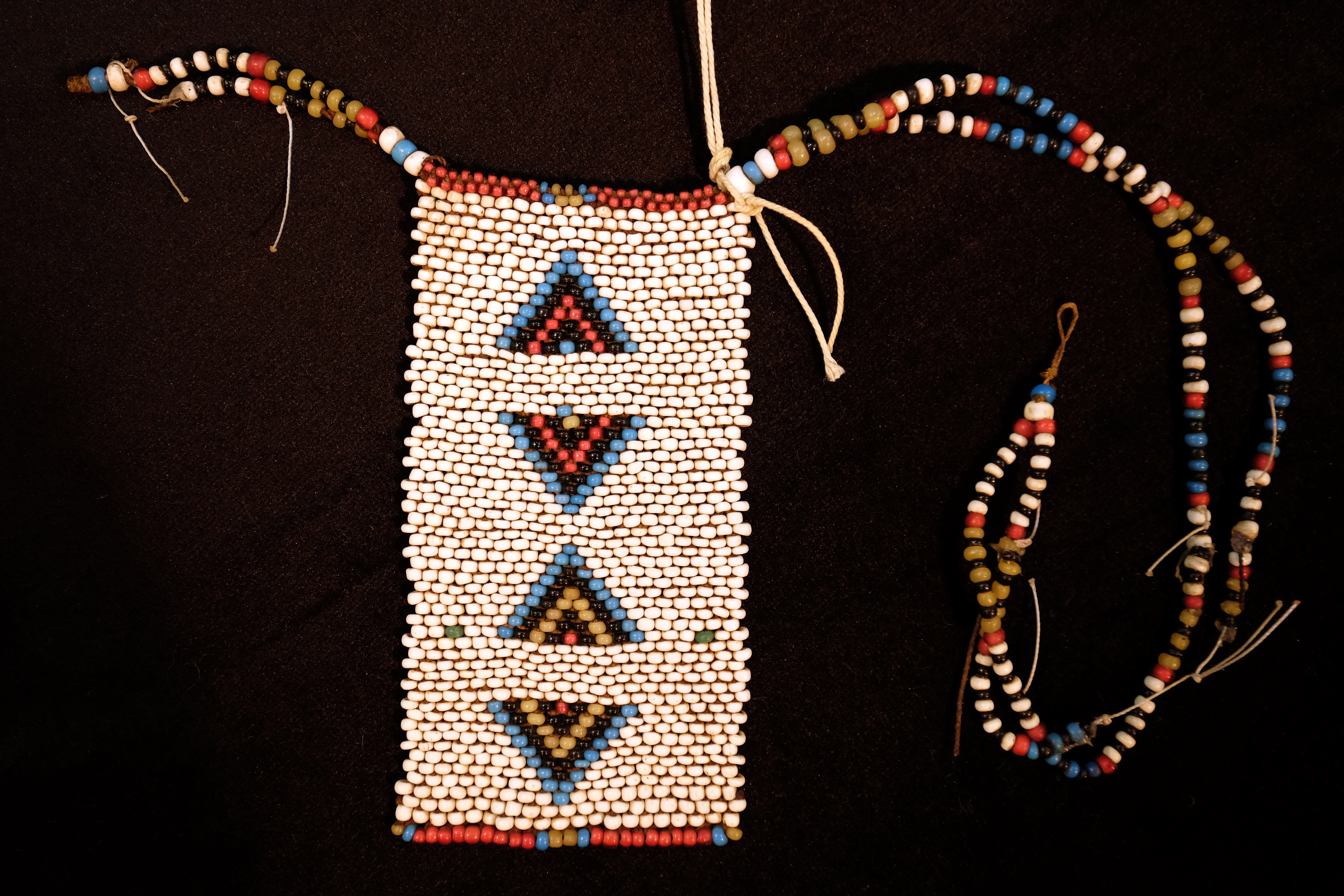 KZNM metadata [Source – Chloe Rushovich, 2019, KwaZulu-Natal Museum accession catalogue: Remarks: Illustrated in Annals of Natal Museum Vol 1 p159. Mus. No.: 518 A-D Species or Genus: Beadwork ornaments. Zulu name Ulimi Locality: Natal Source and Date: Exchange 1906]