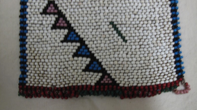 KZNM metadata [Source - Chloe Rushovich for FHYA, 2016, using KwaZulu Natal Museum Catalogue Card: Cultural Affinity: Zulu Provenance: Ixopo, Natal Raw materials: ?Fibre thread. Brass buttons. Beads - white, red, blue, pink, black, few green Comments: Colour combination incorporates a message. Note in Accession Register about No 48 says "Cancelled, see Nos 616 & 690" (Rosemary Lombard, 21/9/16) Method Obtained: Purchased 1906]