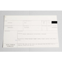 [Source - Chloe Rushovich for FHYA, 2018: File contains object identified by FHYA using KZNM materials as a 'necklace', a catalogue card, and relevant accession record material.]