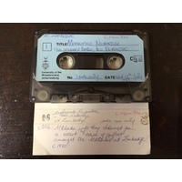[Source - Chloe Rushovich for FHYA, 2018: File contains digital audio file, audio cassette tapes and their associated case labels, notebooks, and rejected edited typescripts associated with the interviewing of Maphumulo Nsibandze.]