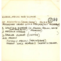 [Source - Benathi Marufu, for FHYA 2021: File contains notebooks and an audio cassette tape case label associated with the interviewing of Lokufika Kunene, Mdluli, Dakwa Zwane.]