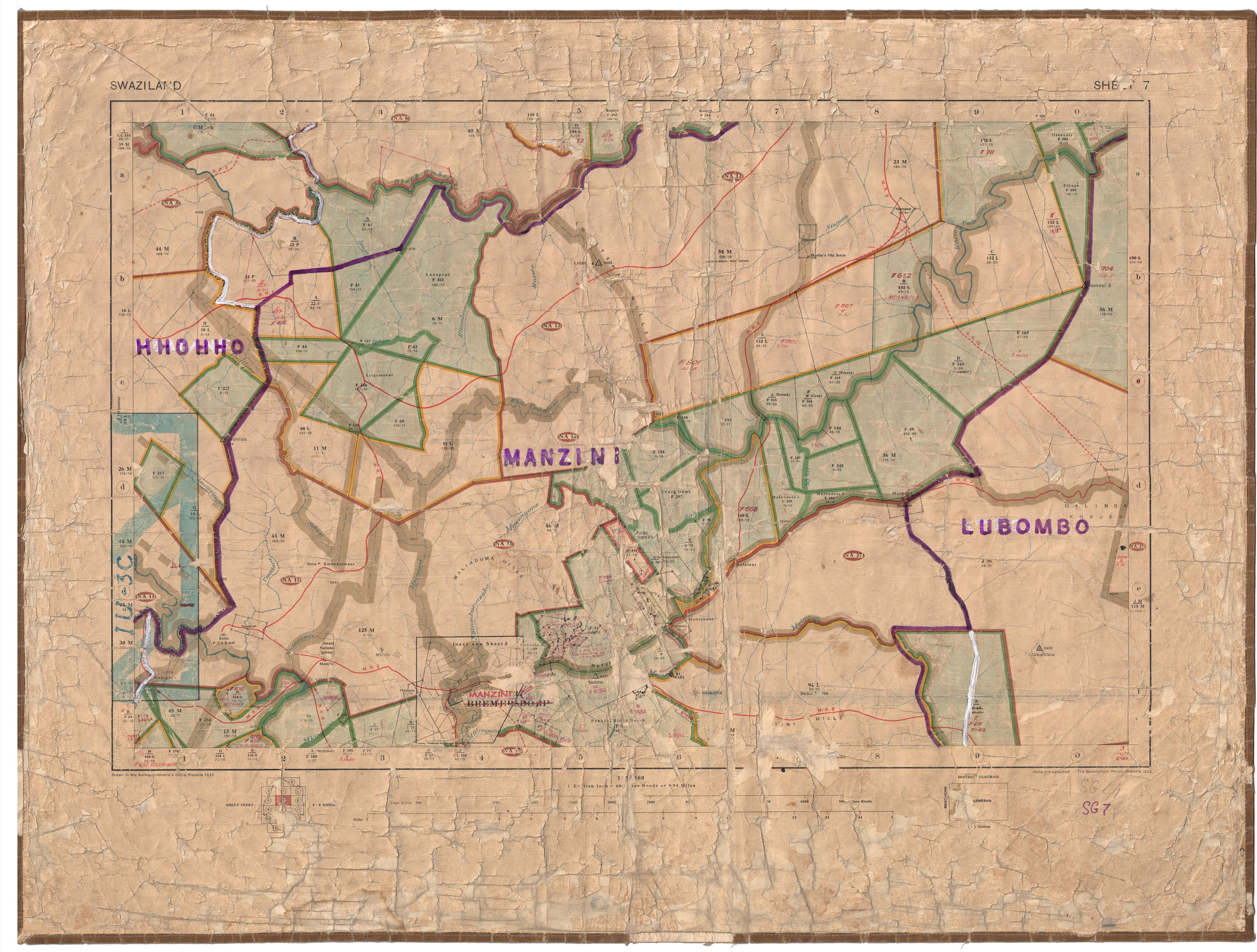 [Source - Carolyn Hamilton for FHYA, 2017: These maps were discarded by the Government of the Kingdom of Swaziland's Surveyor General, and given to the Swaziland National Archives in Lobamba. The Swaziland National Archives did not want to maintain custody of the maps, and offered them to Carolyn Hamilton and Philip Bonner, who were working in the area on the Swaziland Oral History Project.]
