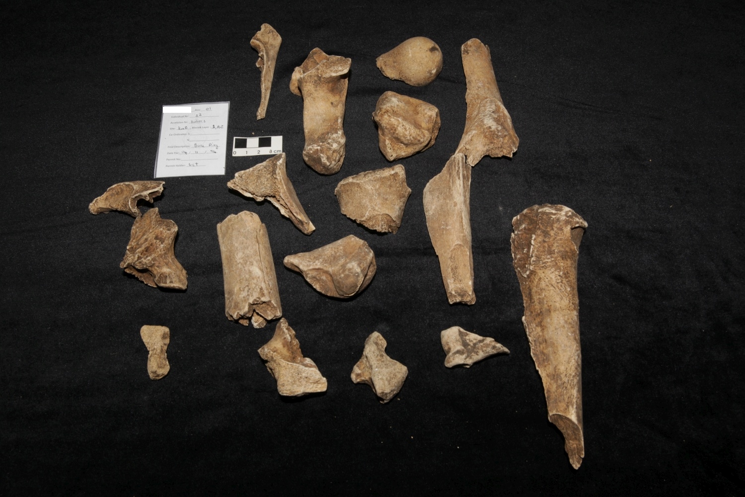 Attributions and conjectures [Source - Michelle House for FHYA, 2020, using AMAFA materials: Diagnostic fauna are pieces of animal bone which can be identified to a species level. In this excavation, these mostly comprise cattle, goat and sheep bones from the food that people ate. From this data, archaeologists are able to extract information on the diets of the people who lived at sites. Important information can also be extracted from the animal bones themselves, such as butchering and slaughtering strategies. Scientific techniques are also able to extract information on what food the animals ate. This gives information on the environment during the occupation of a site, provisioning and herding strategies.]