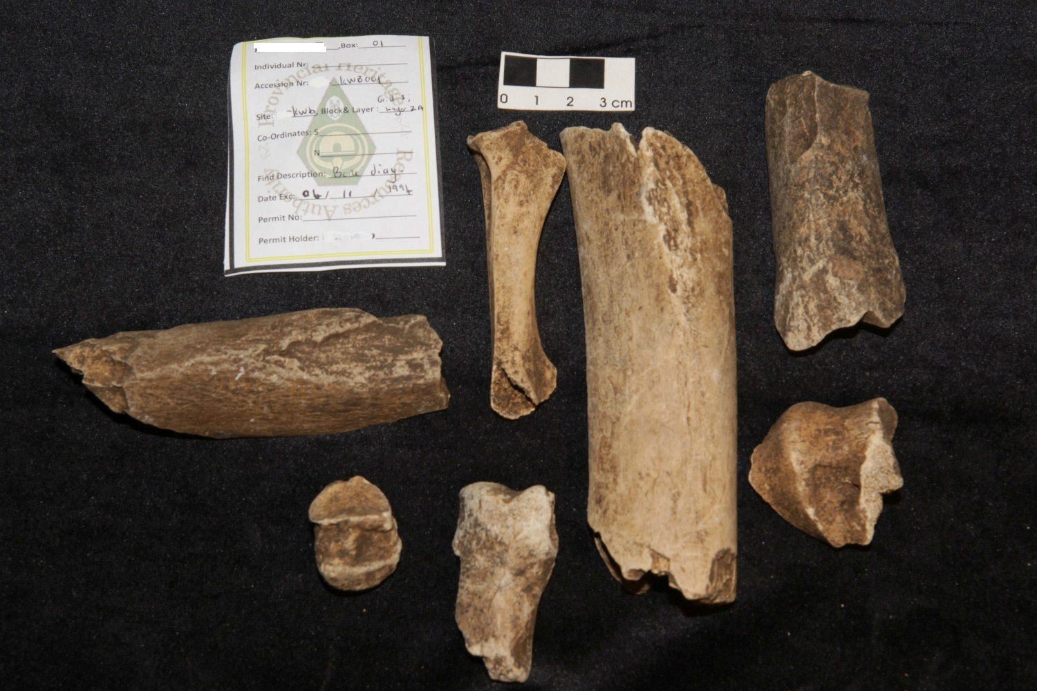 Attributions and conjectures [Source - Michelle House for FHYA, 2020, using AMAFA materials: Diagnostic fauna are pieces of animal bone which can be identified to a species level. In this excavation, these mostly comprise cattle, goat and sheep bones from the food that people ate. From this data, archaeologists are able to extract information on the diets of the people who lived at sites. Important information can also be extracted from the animal bones themselves, such as butchering and slaughtering strategies. Scientific techniques are also able to extract information on what food the animals ate. This gives information on the environment during the occupation of a site, provisioning and herding strategies.]